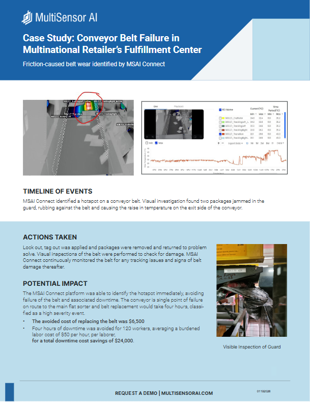 This case study highlights how MultiSensor AI detected friction-caused conveyor belt wear in a multinational retailer’s fulfillment center before it escalated into a high-severity ...