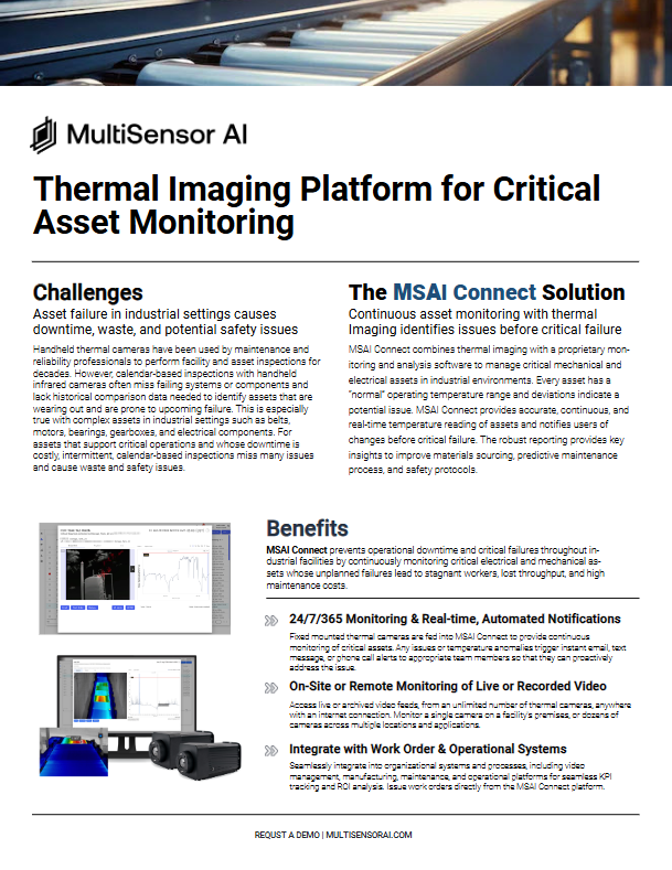 This solution brief explains how MSAI Connect delivers 24/7 thermal monitoring for conveyor belts, motors, bearings, and other critical assets where downtime is costly. By ...